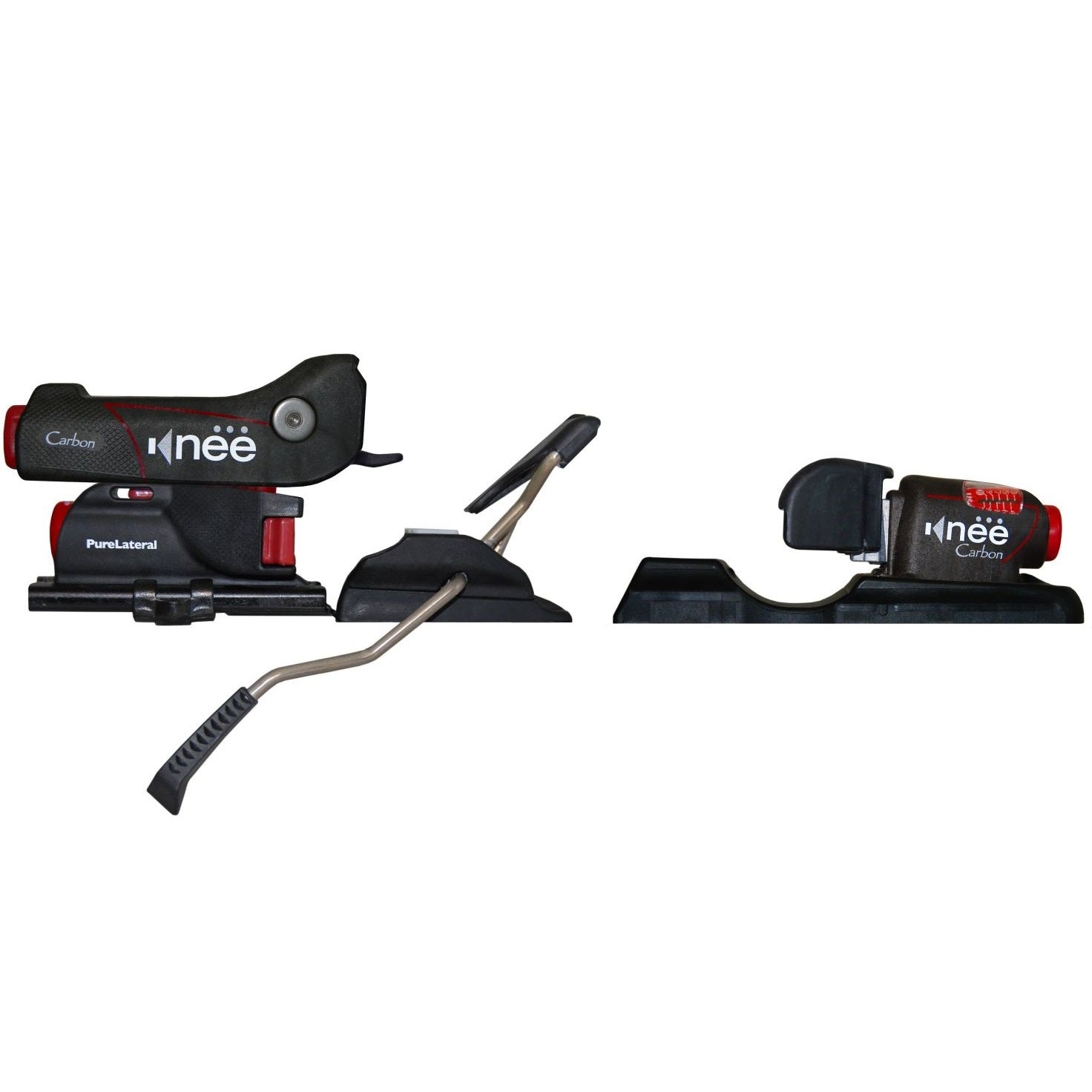 All models of KneeBindings share the same fundamental performance and safety features, including FlexFloatTM, LeverEdgeTM, Cantilevered Brakes, and (of course) PureLateralTM Heel Release.