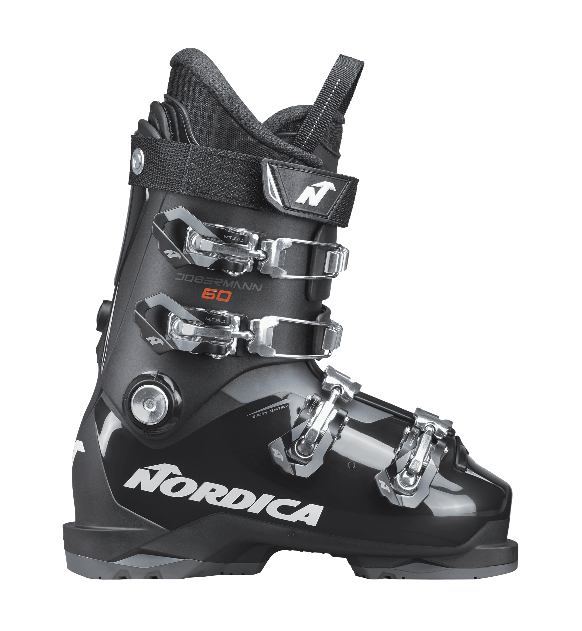 Young skiers who charge hard need boots that fuel their progression—not hold them back. Driven by this belief, the Dobermann 60 helps young racers and all mountain rippers push their limits and maximize their fun. Inspired by our legendary Dobermann collection, this junior boot features a smooth and balanced flex that offers unrivaled response and precision. Its plush liner keeps feet comfortable from first chair to last. Powerful and confident, the Dobermann 60 helps young skiers reach their potential and amplify their fun—be it on the race course or far from it.