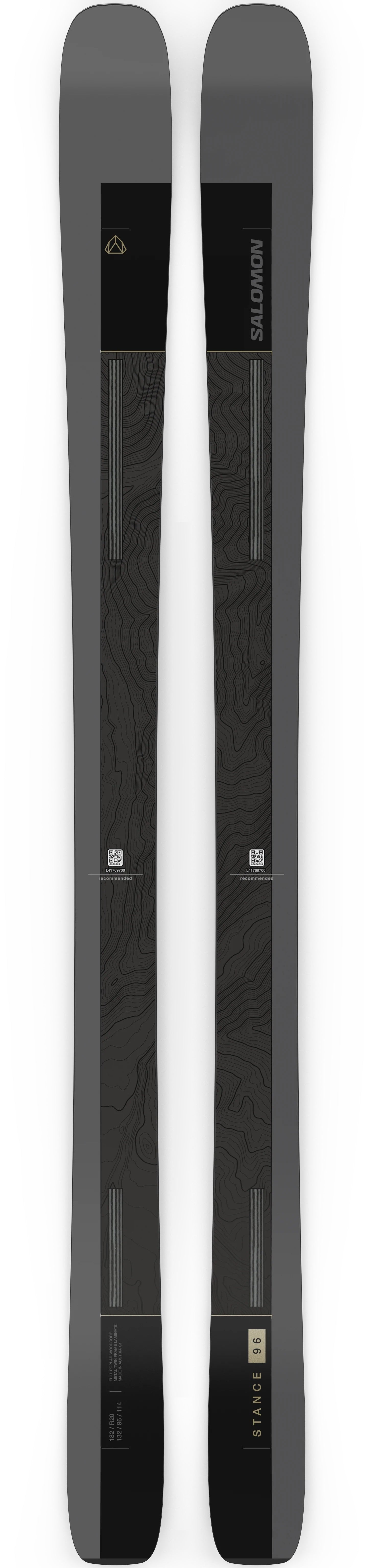 The marquee ski in Salomon’s all-mountain Stance line, the 96 is unrivaled in strength-to-weight ratio. This all-mountain driver offers a butter-smooth ride at any speed. Two titanal plates run the length of the ski to provide impressive edge grip when the going gets firm, and release torsional stiffness for poppy, powerful turns.